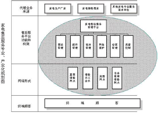 ![]() 规划定位:独立的第三方专注于家电售后服务的产业公司 公司性质:股份制公司 经营模式:连锁经营,实现规模上的统一经营和管理 业务来源:代理服务和直接服务相结合 经营范围:3C产品的售后维修和安装服务 资源组织:总部的营运管理资源+社会维修力量+社会家电售后服务需求 网络支持:连锁维修管理信息系统,平台和维修站实现internet互联。 第一、打造坚实稳固、产业化的维修管理平台 该平台实行公司化运做,独立核算、自主经营,具有管理职能和营运职能。 具体打造该平台需要完成三项重要的工作: 1)建立一套形象鲜明的VI系统 VI系统要体现出服务定位和经营特色,通过该系统,产业公司可以进行市场推广和企业文化建设。 2)建立完整的营运管理体系 包括功能设计、组织设置、职权划分、作业流程、执行表格、考核制度等。 该平台包括六大基础功能: 营运功能:维修站和维修网络营运和作业督导;代理服务管理等 配件管理:配件的采购、配送和配件供应商管理 培训管理:维修网络的技术和营运培训; 网络维护和开发:网点开发和加盟管理,会员资格审查等 结算管理:代理服务结算;配件结算;维修网点结算;维修收费标准制定和配件价格制定;财务管理 质量控制:配件质量控制和维修质量控制;维修技术水平考核和鉴定;商品质量鉴定等 营运管理体系通过两种载体来表现,一种就是形成完整的《连锁维修作业手册》的方式;另一种是以连锁维修信息系统功能设置的方式。通过两种方式,达到的效果是标准化、规范化和快捷、简单、方便。 3)在营运管理体系基础上建立功能完备,操作简单的连锁维修信息系统 信息系统设置功能模块时考虑的出发点是:尽量减少人为评估和操作,可以计算机信息系统实现的功能绝对不能人为手工操作实现,减少管理平台人为操作随意性。 第二、以“四种”网络发展形式,快速布网,形成区域营运管理格局 售后服务产业公司平台的构建尽量在时间上要快,包括VI系统设计、作业手册的形成、信息系统的构建和实施。但是一定要具有可操作性,体现出简单、方便和快捷等特点。 平台成功构建后,通过四种网络发展形式(直营维修站、加盟维修站、专业维修工会员、自由连锁维修站)的选择,结合他们的不同特点分别赋予不同的功能作用。开始发展时最好先选择基础相对较好的二级市场建立直营维修站。一般情况,在地级市建立一个直营维修站,门头面积50-100平方米,投资大约在3-5万元左右,包括房租和必要的设备购置费用。维修工(黑电和白电)大约3名,一人兼任店长,门店实现员工持股制。直营维修站建立之初的功能主要是展示和提升产业公司的服务,接总部派工上门维修。直营店建立的同时可以进行售后服务宣传,宣传内容应重点在服务特色和加盟会员政策上,积极推动网络的开发和营运。 直营维修服务站在功能上主要是维系维修公司与当地顾客紧密的关系,起到一定的展店作用,但是大量的网点应该是以加盟的方式发展,实现强大平台基础上的资源共享和规模条件下的统一运营。加盟维修站必须实现“十”统一: 1)统一的商号、品牌形象 2)统一的装修和视觉形象 3)统一的经营范围 4)统一的服务规范和管理 5)统一的信息系统 6)统一收费政策 7)统一广告宣传 8)统一的培训管理 9)统一的配件供应 10)统一的热线服务 加盟门店的收益主要来自于本区域3C产品的安装和售后维修,管理借助于总部平台,每季度交纳一定的管理费,配件供应单独和总部进行统一结算。 其实在发展初期,考虑到操作的灵活性,应该以自然人(达到一定技术水平和具有服务意识的维修工)加盟会员为主,该加盟会员接总部派工单登门维修,按照维修量和收费标准与总部统一结算。统一执行总部的营运管理规定。 第三、展开统一的宣传攻势,加大对售后服务优势的宣传和加盟政策的宣传 综前所述,使我们更加清晰的认识到:家电连锁和生产企业的售后服务产业化进程是随着其母体的市场变化而变化的,距离社会化的产业化进程还有很大的一段路程要走;除了家电商家和厂家的售后服务产业化两大道路外,仍然有第三条路可走,该条路能否走好取决与对两大市场的组织程度。因此,家电售后服务的产业化进程必须建立在一定的市场环境基础上,不能脱离实际;又在目前全球都无家电售后服务先进经验借鉴下,我们只能立足中国家电消费现状,不等不靠,全力推进家电售后服务产业化进程。 郝登伟,laury,中国连锁经营协会会员,美国MBA,长期从事连锁经营规划、特许连锁设计、卖场管理、物流配送规划和设计、医药商品品类管理、区域市场开发、家电行业研究、电子商务规划等工作。电子邮件: hdw@vip.16.com 本网刊登的文章均仅代表作者个人观点,并不代表本网立场。文中的论述和观点,敬请读者注意判断。