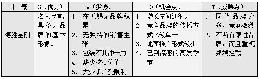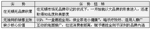 “德胜金刚”感冒药无锡市场启动方案 7 上页:第 1 页 五、概况分析 1、我国每年约有十亿人左右患过感冒。按每人用药15元——20元算,感冒药每年约有150亿——200亿元潜在市场。而从现实销售额来看,我国感冒药市场的年销售额在30亿——50亿元之间。与潜在市场相比,感冒药市场还有120亿元——150亿元的巨大增长空间。 2、虽然感冒为常见病和多发病,但是人们对其基本知识仍不是很了解,这种信息的不对称使得医药生产企业和销售者在价格制定上很大的主动性。感冒药作为一种家庭常备药,目前的价格还是偏高的。 3、感冒药作为一种最常用的非处方药,其生产技术已经相当成熟,一般为较简单的非专利技术,研究开发费用也比较低。同时,感冒药的注册登记也比别的药品简便。这样,感冒药行业无论在技术和资金上,还是在政策法律上都不存在太高的壁垒,因此,还会有大量的品牌跟进。 六、SWOT分析 ![]() 七、劣势扭转 ![]() 八、策略 (一)定位策略 1、品牌定位:塑造一个具有亲和力的防治流感的专家。以地面推广为主,媒体炒做为辅,深入社区,传播知识,打造品牌。 2、市场定位:迄今为止,以心理因素和行为因素来细分感冒药市场的企业还很少。为了寻找空白市场和目标顾客,德胜金刚可就心理因素和行为因素对感冒药市场进行进一步细分。如:以公益的活动来宣传品牌形象,可以以无锡“截流”者(拦截及防治感冒)的身份进入市场,拉近与消费者的距离,把消费者切身的健康大事为己任。以良好的公益行为来打动和影响消费者对德胜品牌的偏好,以潜移默化的心理感受获得市场份额。 3、人群定位:以家庭消费影响个体消费。 4、定位依据: A、用药“安全第一”,但又不能直接说德胜金刚是安全的,因为直接说没有力度,通过树立专业的品牌形象。 B、做市场不能缺少广告,这也是各企业普遍的运作手法,各企业单纯的广告轰炸在相互抵消其作用,德胜金刚应有自己的特色,那就是地面推进——企业行为,力求从众多的竞争品牌中脱颖而出。 C、家庭消费能让家庭成员相互议论、评价果,增强记忆度,获得良好的口碑。 (二)沟通策略 1、沟通指导原则: A、传播重点人群和重点区域,以点带面。 B、实现“高起点、高回报”的市场战略的原则,严格与竞争品牌区别。避开广告轰炸的误区。 C、由于感冒药的功能明显,所以不必传达产品的功能,重点传播德胜金刚的大品牌形象,让消费者觉得德胜金刚是体贴的、具亲和力的、就在身边时刻关怀自己健康的健康使者。 2、信息整合策略:形成标准件。 A、方便——便于服用和携带。 B、效果——德胜金刚治感冒,快速安全疗效好。 C、承诺—— 一盒德胜金刚,保全家老小健康。 D、专业化——主导无锡“截流”工程(截流:拦截及防治流感); (三)沟通渠道 1、媒体策略:地面推广为主,媒体炒作为辅。 2、终端: A、DM:补充其它媒介宣传的不足与不能; B、卖场POP:大型卖场,连锁大药店建立产品形象灯箱、易拉宝、展示牌。 3、软终端: A、终端拦截:建立一支常规的促销队伍; B、疗效定位:一般两天驱除感冒; C、安全定位:德胜金刚不会产生抗药性,重复使用会有同样的效果。 4、活动:持续性的宣传活动和促销活动是日常工作之一。 5、售后服务:专人跟踪回访,搜集例证,询问服用情况,负责不满意的投诉处理。 (四)销售策略 1、销售原则: 依靠专业的市场营销人员,采取科学合理的铺市计划,以点带面,再以生动活泼的终端促销,重在宣传品牌内涵,深度沟通营业员,指导消费族群购买、服用,形成互动式的开发。 2、渠道管理及维护:以铺一个点,做活一个点为原则;以一个店辐射一个社区的的原则,把促销视为日常工作,做到深耕细作。 3、铺货控制:加强对铺货的控制,先力求口碑好,把生意好的大中型店的铺货率及终端工作做扎实。 九、实施 (一)铺货:选择大店、大型连锁药房率先推出。 (二)目标:陈列展示产品在大型卖场,标志着产品的进入,提高品牌自身价值(进入黄金口岸的卖场,产品就能有一定动销)。 (三)推广组合: 1、DM:从“德胜金刚”的特点、功效输出入手,严格区别与其它产品的不同,以科学理性的文字对德胜金刚功能机理做全面系统权威性的阐述。 2、POP:统一的“德胜金刚”品牌形象,并附上简洁的宣传口号,做形象品牌提示。 3、专用海报: 4、报刊:以软文炒做为主,硬广告提示为辅。 5、终端促销: A、加强营业员对德胜金刚的教育和知识的普及。 B、对店主任、店经理进行公关和沟通,配合德胜金刚推广工作的顺利进行。 C、夹报广告,散发宣传单。 本网刊登的文章均仅代表作者个人观点,并不代表本网立场。文中的论述和观点,敬请读者注意判断。