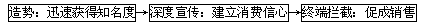 “德胜金刚”无锡市场实施步骤 总体思路 ![]() 一、 造势 (一)、活动主题:启动无锡“截流”工程 (二)、活动程序:恐吓(流感即将来临)→引起关注→提供解决方案→树立德胜健康使者的形象(大规模的赠药活动) (三)、操作方案 1、在媒体上发布流感即将侵袭无锡市民的信息(报纸、电视、广播),如新闻标题:“流感”即将来临,您准备好了吗?; 2、引起市民对预防流感的强烈关注; 3、发布信息,为无锡市民提供预防流感的方案,以软文的方式暗示选用德胜金刚,如新闻标题:如何预防今年秋冬流感,您不能不知!; 4、树立德胜健康使者的形象, 如新闻标题:上海德胜集团耗巨资启动无锡“截流”工程(大体内容:为了预防及拦截今年秋冬流感对无锡市民的侵袭,上海德胜集团耗巨资X月X日启动无锡“截流”工程 ,…… ;X月X日可凭任何两个感冒药的空盒子,到X地换取一盒德胜金刚……。 5、组织换药活动; 6、换药活动跟踪报道,各媒体大肆炒作。 二、深 度 宣 传 (一)、媒体宣传:主要突出德胜产品的安全性,以及德胜集团的实力,给消费者信任感。以软文形式报道德胜集团 (二)、秋冬疾病预防社区总动员 1、聘请兼职医生深入社区做知识讲座; 2、一方面自己主动联系社区,一方面在公众媒体上告之此信息,让社区主动邀请我们去讲课; 3、穿着大白褂的礼仪小姐跟随医生深入社区发放“秋冬疾病预防手册”。 三、终 端 拦 截 (一)、有奖征集德胜品牌推荐活动方案 1、促使店员思考总结如何向消费者推荐德胜产品; 2、进一步通过店员自己教会自己贩卖德胜产品,提高销量; 3、让店员把销售德胜产品变成一种潜意识活动。 (二)、聘请兼职坐堂医生 1、聘请药店现有的坐堂医生为我们的兼职人员; 2、坐堂医生的待遇采取底薪+销售提成的办法; (三)、派驻导购员 1、聘请药店现有的坐堂医生为我们的兼职人员; 2、坐堂医生的待遇采取底薪+销售提成的办法; 具体活动方案 一、无锡“截流”工程启动方案 活动描述 “截流”既拦截和防治流感的意思,把普通的活动声势扩大化,公益化;把普通的被很多人忽视的感冒,放大到及至,以挖掘巨大的潜在消费,并以此来打造德胜金刚品牌的领导、权威的形象。既然把拦截和防治流感当作是一项工程,就具有一定的持续性,而且把具有商业目的活动公益化,进而得到普通百姓的关注和参与,把德胜金刚与普通百姓平时所关心的健康大事紧紧联系在一起。 活动可行性 1、具爆炸性,吸引眼球、吸引参与 2、具公益性,美化品牌形象 3、意义明显,易于品牌联想,感冒联想到截流工程联想到德胜品牌 4、以“截流”工程为活动主线,把其他活动串起来,体现整体性,持续性 5、是其他品牌不可效仿的推广策略 目的:迅速获得知名度,引起市民的强烈关注 内容:通过换药(2个任何品牌的空盒换取1盒金刚)的手段吸引市民参与、关注。 时间: 年 月 日 地点:八百伴 主题:启动无锡“截流“工程 副标:预防及拦截今年秋冬流感 口号:“截流”工程,全民总动员 主打:德胜金刚 广告语:1、一盒德胜金刚,保全家老小健康 2、德胜金刚治感冒,快速安全疗效好 ![]() ![]() 二、“无锡‘截流’,请您献策”操作方案 活动描述:提高活动的参与性和参与机会,就是给消费者了解德胜金刚的机会,通过征集“截流”方案能让更多的人加入到活动当中来,征集的内容不单是专业性的,更多的是如何加强防治感冒的意识和如何普及防治感冒知识,而且参与即有礼品赠送,让普通百姓都有参与的欲望,让消费者感觉到德胜金刚是真正关心百姓健康的使者。 目的:拉近消费者距离,让市民深入了解德胜,产生互动 形式:向无锡市民征集“预防及拦截秋冬流感实用方案” 程序:在报媒上公布活动消息→征集(邮寄或直接投递)→评选优秀方案→发放奖品 ![]() 本网刊登的文章均仅代表作者个人观点,并不代表本网立场。文中的论述和观点,敬请读者注意判断。