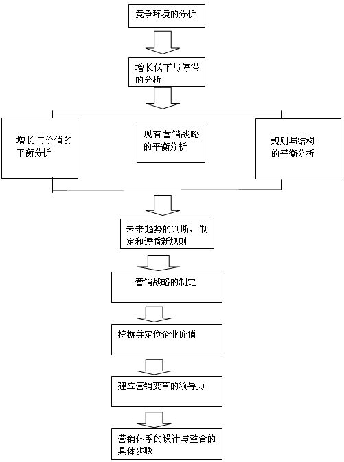 ![]() 从上面的路径看,一个企业所希望实施的营销变革开始于领导的自觉,而自觉是要表现为对企业价值的坚持与创新,在这些条件具备后,就要着手就营销战略进行制定,这个过程有四个非常相关的要素综合考虑,在深入研究各关键要素所有的平衡后,营销变革管理才能解决企业业务增长的困惑,才能持久实现营销竞争力。 那么。对于咨询公司而言,如何去辅导企业在营销变革上产生成效是我们所关注的事情。在这里,我们总结了一个实施营销变革管理咨询的路径: ![]() 以上就是下马威顾问近年来在企业咨询活动中,一个基于战略导向的营销变革管理平衡图的基本理解和解释,该图的价值在于为咨询公司提供了一个重要的分析思维框架,在具体的营销变革管理推进中要注意结合具体的情况进行变革规划,如果我们真的理解了变革的真谛,那么,我们还有不知道变化的东西吗? 营销变革管理理论有一个很重要的关键词,那就是“战略性营销”,那么如何去理解这个关键词,一直在理论和实践中有很多不同的看法。 管理总是实践驱动型的,用一个好的案例去说明一些理论,特别是管理方面的理论总是会给人以轻松的感觉。 在营销变革理论中,我们首先提出了超越传统的以战略为导向的营销变革,并且从理论上对战略导向给出了很高的地位和评价。但是如何去理解这种战略性的营销变革却在我们的很多人之间显得不是很清楚,因此,有必要将战略性或者是战略导向的这个关键问题搞清楚。 在营销变革的理论中,我们用以下一个简单的图表来说明当今营销理论的变迁: ![]() 具体的用下面的图示来说明: 营销理论的转型模型: ![]() 第 1 2 3 4 5 6 页 下页:营销变革管理咨询案例 8 本网刊登的文章均仅代表作者个人观点,并不代表本网立场。文中的论述和观点,敬请读者注意判断。