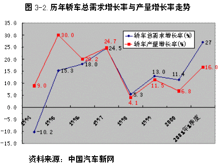 强手对垒 谁是王者?--上海别克轿车国内市场机会评析(中) 7 上页:第 2 页 3.2001年一季度国内中高档轿车市场分析 据汽车行业协会统计,我国2001年开局良好,第一季度汽车生产企业销量全面增长,市场稳中快速运行,企业经济效益继续好转,汽车进口明显提升。一季度生产汽车55.1万辆,销售55.76万辆,同比生产增长23.26%,销售25.72%,创1994年以来历史新高。产销率突破百分之百,销售增长高于生产增长2.46个百分点,表明市场运行节奏加快,企业库存适量减少。在汽车市场的销售增量中,轿车为3.82万辆,市场贡献度达33.46%,扭转了近几年轿车市场地位下降的局面。 2001年一季度,国内轿车行业整体表现不俗,与客车与货车同期相比销量增幅最大(见表3.)。轿车产量增长幅度为19.03%,但是销售增长幅度高达32.58%,销售量比生产量多出近1万辆,说明市场形势阴转多云。轿车企业中业绩最为骄人的是广州本田,增长幅度达到183.79%,该企业今年的雄心是比去年长一倍,近日雅阁3.0下线显示出广州本田信心很强,开始在3.0升级轿车市场上同奥迪、别克等产品叫阵。一汽大众业绩不俗,取得了增长57.11%的好成绩,捷达和奥迪两个产品比翼双飞。上海大众去年正处于走麦城的境地,产量下降了一成,今年依靠帕萨特的稳升销势,稳住了老产品的阵线,生产出现明显的增长,销售更增长46.87%。神龙公司一季度形势也较好,生产增长了21.47%。 ![]() 一季度,私人需求对轿车市场的拉动作用进一步扩大,进口轿车市场占有率开始回升,轿车生产出现两极分化趋势(见表1.2-2),并出现了1994年以来的最好形势。 从图3-2中分析可看出,国内轿车产需历年的波动很大,95年是轿车产量增长的高峰期,增长率达到30%,而2001年一季度轿车的需求增长率则位于历年增幅之首。从这个需求增长的信号中,我们可以发现轿车快速发展的时机来临了。 ![]() 从图3-3发现,私人轿车需求比例正逐步放大,2001度一季度私人轿车需求占轿车总需求高达到48.2%,私人轿车消费拉动轿车市场发展的迹象明显。而私人轿车消费中,中高档轿车消费又占据了较大的一块市场份额,也就是说,在私人轿车需求比例的增幅中,中高档轿车消费的贡献不小。 ![]() 从图3-4分析,进口轿车在97年的市场占有率最高达到6.4%,98-2000年市场占有率趋于萎缩,大概缘于这一阶段国产合资品牌轿车的崛起,造成消费移位,而2001年一季度进口轿车市场占有率又开始回升,这可能与前段时间,我国对关税的主动性下调有一定的关系,进口轿车市场占有率的提高,意味着对国内中高档轿车市场资金的分流,对国内中高档轿车市场份额的瓜分。可以看作是入关前国内中高档轿车与进口轿车的热身赛。 ![]() 由(表3-4.)2001年1-3月轿车生产企业产销状况可看出,国内轿车产销已发生明显的两极分化。今年一季度中高档轿车的生产企业总体产销情况好于去年,上海大众因其帕萨特在市场上的热销,已出现了产销两旺大好局面,上海通用则稍显疲软,其它低档轿车如奥拓、云雀则表现得令人担忧。 ![]() 第 1 2 3 4 5 6 7 8 9 页 下页:第 4 页 8 本网刊登的文章均仅代表作者个人观点,并不代表本网立场。文中的论述和观点,敬请读者注意判断。