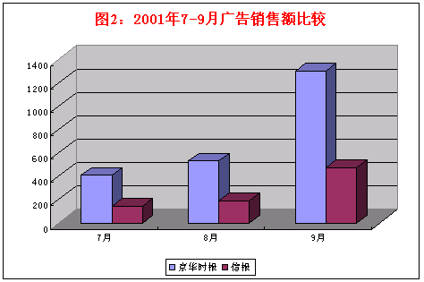 探析《京华时报》快速成功之道(下) 7 上页:对《京华时报》的发行策略分析(2) 据北京慧聪媒体广告研究中心在2001年第三季度,对京城六大平面媒体的统计数据显示,《京华时报》的广告是上升势头最猛的。从广告的绝对量上来讲,《京华时报》与《北京青年报》、《北京晚报》、《精品购物指南》和《北京晨报》是不具有可比性的,因为后四类媒体相对成熟。但与《京华时报》成立早9个月的《信报》相比:7月,《京华时报》的营业额达到了409万,而《信报》为142万;8月京华时报的广告就上涨到531万,而《信报》是189万;到了9月份,两者的差距进一步拉大,《京华时报》达到1300万以上,《信报》为472万,已经不是一个数量级的较量了(见图2)。 ![]() 从这六大媒体广告7、8、9三个月的增长率来看,传统四大媒体中《北京青年报》和《北京晚报》基本上平均保持在15%以上高速增长,最高时可以达到30%以上,《精品购物指南》、《北京晨报》相对比较平稳,都在10%左右,《精品购物指南》在8月份甚至还下降了13%。《京华时报》与《信报》由于基数较小,增长率较大。《信报》由于7月份广告回落了30%多,使其8月份的增长显得没有太大意义;相反京华时报却一路上扬,由7月的10%左右暴涨到9月的150%左右。从简单的数据可以看出,《京华时报》的广告势头最猛;从广告市场的分配来看,目前它对《信报》、《午报》等新生报纸的打击最大;从报纸的定位与类型上看,未来它对《晨报》的压力最大,毕竟它现在已经夺走了早报类发行龙头老大的位置;从单纯的广告增长势头上看,超越以略显老态和女性化的《精品购物指南》是迟早的事了。 《京华时报》的广告为何增速如此之猛,飙升如此之快?想必与其年轻的28岁的广告才子副总崔斌先生不无关系吧。他的广告秘笈外人很难知晓,但翻看《京华时报》的广告版,可以发现,其广告主主要分布在房产、汽车、手机、电脑、订票、征婚与培训这几大类,这正好又与其新闻综合类都市报的定位和读者群的需求相吻合。高市场注目率、大读者覆盖面、以及定位与读者群的高度匹配,也许这就是其广告快速发展的原因。 第 1 2 3 4 页 下页:对《京华时报》广告经营状况的分析(2) 8 本网刊登的文章均仅代表作者个人观点,并不代表本网立场。文中的论述和观点,敬请读者注意判断。